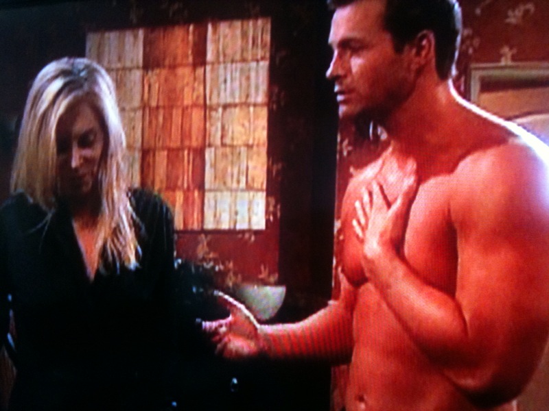 | Tuesday, December 4, 2012 ALL RIGHTS RESERVED. LINK ONLY! Up in the afternoon of December 3 SEEING IS BELIEVING! - Brady wakes up nekid in sleeping Kristen’s bed as the morning sun streams in. He kisses her shoulder and seductively wishes her a good morning. “Oh my God!” she exclaims. “We didn’t!” He murmurs they did and they start to get physical again. Kristen suddenly jumps out of bed and gasps for him to go and never come back! Brady gives her a come hither look. She soon returns in her robe and ushers him to hurry up as he fastens his pants. Kristen laments this was a mistake and should never have happened. - Marlena is at the coffee house with John and thanks him for the coffee. She flashes back to her recent clash with Kristen and confesses she has something serious to talk about. He unhappily deduces it concerns Kristen! He would rather not discuss it as he has a full day and hastily leaves after putting his jacket on. But a tube of lipstick has fallen from his pocket. Marlena is surprised and picks it up, wondering. - Sami is at her desk, flashing back to Rafe’s gift of flowers. She thinks he could at least update her on how Gabi is doing and calls him. As his phone rings, EJ bursts in and suggests that might not be as important as what he has on the go. Sami admits her call can wait. When Rafe returns her call seconds later, she is too busy - and uncomfortable - to answer, given that boss EJ is present. Rafe wonders what she wanted … Meanwhile, EJ has the market research on Asia for her. He drawls he must depart for the church. Kristen has not been answering her phone and so he needs to drop off that check himself … - At the rectory, demurely dressed secretary Nicole presents Father Eric with a packet for a meeting on the school fund. She efficiently assures him that Sister Margaret brought her up to speed. She giggles she will be a hit there soon and thanks him once more for giving her this chance. She insists she will do better from now on! Father Eric is impressed with the steps she has already made. She concedes that staying there has been a change, though she slept like a rock, so peacefully. She casually asks how he slept. He flashes back to his night terror and fibs he was up all night with a parishioner. Nicole calls him a saint. Eric denies it and appears distracted. - Will sits at the pub counter and informs curious Gabi that Caroline has been there since the wee hours of the morning. He asks about Nick’s whereabouts as she wipes down the counter. Aunt Maggie invited him for an early breakfast. Gabi is interested in how Will slept last night. He sighs he did not sleep as he had much on his mind. She wonders what he decided. He did not yet but he will soon, as they are talking about his child’s future. He points out this is also his responsibility. Gabi points out it would not have to be if Nick could raise the baby as his own. She only wants her baby to have a great life and for Will to be happy. She adds it is a hard decision. Rafe saunters in, assuming they are talking about her almost abortion and wonders why Will is in the middle of everything with her pregnancy still! - Sami suggests she go with EJ to the parish. He agrees. They marvel how well they worked last night. He helps her on with her coat as she teases the boss came up with a brilliant idea. He thanks his employee. They hope for more successful such get-togethers ... - Nicole stands before Eric’s desk and brings up the contributor’s list. She fears they could lose donations if people got wind of her bring there. Eric reminds her she is turning her life around. She smiles he is saintly. This means so much to her and she thanks him. He looks up from his desk with a grin. When she walks away, his demeanor becomes a tad tragic. - Kristen admits there is an attraction between them, but she knows he hates her! Brady stands up and shrugs his shirtless shoulders. “That changed.” She feels it was for a fleeting moment but he begs to differ. Kristen whispers it is wrong. Brady slowly shakes his head and sighs. He perceives she is afraid. She pouts he should be too. He takes her hand and kisses it. Kristen babbles when Marlena read her journal, she felt exposed. Brady understands. But he is convinced what happened between them was not casual. Kristen admits she has feelings for him but she never planned to act on them. He deduces because of his father. She gives him a coy glace. “Yes!” He reminds her she had claimed she was over his father. Kristen remembers John, then insists she is. Does he not feel uncomfortable though? Brady drawls he cannot take his eyes off her. She hopes it does not have anything to do with his father. No, it does not. However, Kristen thinks John would not believe it and laments she is not the type to sneak around. He woefully whispers there has to be a way. Kristen sadly states there is no way. In fact, John and Marlena can never know. This must remain their secret forever. She dramatically urges him to leave and never come back. Brady shuts his eyes in sorrow. - Gabi explains to Rafe that she called her bff Will to talk about things. Rafe gets sarcastic. Will hastily excuses himself and scurries away. Rafe wonders why his sister did not call him to talk. Gabi repeats she and Will are best friends and points out he was harsh with him the other day. Rafe is sorry and asks how she is feeling. Not tops. He understands as she had a big decision to make. She announces she now has another one, for Nick has proposed! Rafe pauses, then forces a grin and notes he is into her. He sips his coffee and assures himself this is good if it makes her happy. She wonders how he feels about it. He replies this is not his decision to make. Yesterday he just wanted her to think rationally. Gabi now changes the topic of conversation. It was nice to see him and Sami together. He makes light of it but she thinks he should make a move. He was never happier with anyone. Rafe admit