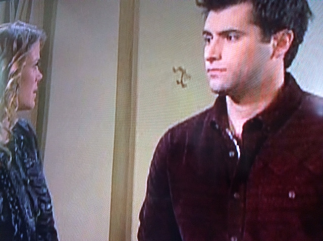 | ALL RIGHTS RESERVED. LINK ONLY! THIS TV EPISODE WAS TWEETED ONE HOUR AHEAD BY DAYSCAFE :) Love Makes the World Go Round ... Tuesday, February 11, 2014 Episode 12,273 - Will is ready to confide in Marlena as they eat and drink at the club and he bears good news. He stammers and pauses and Marlena teases alas he is saying nothing. Will now happily blurts out Sonny asked him to marry him. Marlena has tears in her eyes and smiles Oh Will! - Crafty Kate is on the phone with her man Ortiz at the pub. The diva demands he investigate the photos she sent him of those fake IDs no matter what! She gets her coffee ready and in flounces colorful Julie, smiling she owes her an apology about Nick. Kate observes her with suspicion in her cat eyes. - At the apartment, Gabi is remembering Nick holding the baby. Sonny notes that they will need to eventually wake up Ari for her doctor's appointment. He asks Gabi what is the matter as she stares into space. He reminds her there need be no secrets. Gabi is decidedly glum. He offers to lend an ear. Gabi sighs it is crazy but maybe just maybe Nick is a good guy now! Sonny is floored. - Nick is at the square all by his lonesome, eating frozen yogurt. He feels like the man of the hour, having gotten spiffied up, his hair slicked back. He spies Abigail alone with her coffee and her thoughts as she obsesses over EJ and the shower. Nick approaches and asks if she is alright. It seems to be a loaded question. Pause. The girl stammers she is fine. And him? He is on his way to Kate and Mad World. They have made up. Abigail is surprised but wishes him well. He grins thaaaaaanks, tells her to take care, and goes on his gangly way. - At the mansion, EJ is working at his computer as Sami yells to Johnny it is cupcake time! She is dressed for success in her stylish geometric red, black and white dress. EJ wishes she could stay and at least show Abigail the kitchen, then laments it is still hard to talk to Samantha at the other end of the corridor. However, he understands she has much on her mind with Eric. She gasps when Eric is back from the monastery, she intends to talk to him about ... EJ wonders about them? He does not seem to agree she should share their personal matters with Eric. Sami sits across him at the chess set now and emotionally explains she will tell Eric how much she loves EJ and how sure she is that he would have stopped what Kristen did had he been aware of it. EJ doubts he will be interested. Sami is hopeful. EJ wonders who she really wants to convince to move forward. Eric or herself? - Nicole finishes her caffeinated soft drink and enters Dan’s apartment, thrilled about what she got in the backpack. She is stunned to find Brady there looking out of sorts and demands to know what he is doing. Fully dressed Brady drawls he came to get away from his prying people and starts to take his leave. First Nicole borrows his phone to send a text to Dan. She is back and where is he?! Dan replies via text that he is on his way. Brady puts his dark coat on and is curious. Nicole gushes she and Daniel have something amazing in store for Eric! - Meanwhile Eric is welcomed back to the church by Father Luis. Father Eric grins he came back from the retreat early for he had no more reason to remain! The priest pleasantly sits and smiles he is at peace. He now knows God's plan and what he has to do ... - Kate wonders. Julie gushes she means Kate is so generous letting Nick work for her again! Kate stares. Julie regrets she ever blamed her for his departure from Salem. Kate flashes back to herself and Gabi and Sami dumping him in the river. Julie sweetly notes there must have been others involved in Nick's departure, not only one person so she should not have blamed her! Kate coldly asks if Nick happened to share the real reason she decided to have him back. - Marlena jumps up, embraces Will and exclaims she is so happy for him! When is the wedding? Will admits he has not yet said yes. Marlena is sorry, she had presumed ... Will sits back down with her and explains he is sure. It is just that things in his life have been complicated and he would not wish to hurt Sonny. Marlena now learns that Sonny is aware of those complications and proposed regardless. She reminds Will how much he loves him. Will sighs he loves him too. Marlena wonders what the real problem is, in that case. She knows there is more to this. Will does not deny it. - Sonny snaps Nick the notorious has not changed! He is livid to learn that Gabi actually let him get close to the baby at the pub. She reminds him he could expose them and she hit him with the rock. And what if he remembers? Sonny knows he remembers. And he has much to lose as he tried to assault her! Gabi suggests Nick forgiving them would be a good thing, though. - Julie admits to Kate that Nick had boasted he had something in his possession that could be damaging to Kate if he took it elsewhere. Kate does not deny it. Julie the bubbly buttinsky muses this time she will be keeping an eye on him too and waltzes out, pleased with herself. Kate curses Nick under her breath. - Belligerent Brady flat out refuses to listen to anything about Eric, cos it reminds him of Kristen. He leaves in a handsome huff. Nicole admires the envelope with the evidence that will clear Eric's name. - Eric and Father Luis shake hands. - Sami whispers she knows this impasse has to stop. EJ thanks her. He understands she loves her brotha. He believes wot Kristen did to him was unconscionable . She sniffles and thanks him for the sentiment, then vows to make Eric see the light. EJ wants to know what she believes. She believes in EJ and Sami forever! Ding dong! Sami now goes to open the door as hiccup Harold is evidently in the wine cellar. Tis young Abigail, wearing a ponytail, wide-eyed, pretty in pink, bearing a muffin pan as well as Horton aprons. Sami thanks her profusely, assures her EJ is here, and makes for her meeting. The girl in pink sighs it is her pleasur