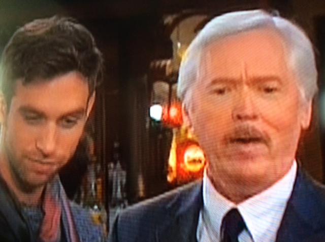 | ALL RIGHTS RESERVED. LINK ONLY! THIS TV EPISODE WAS TWEETED ONE HOUR AHEAD BY DAYSCAFE :) SWEEPS ARE HERE! Monday, February 3, 2014 Episode 12,267 - JJ dreams of waking up to Theresa and her sexy cuffs in bed as she purrs he is going to jail! He wakes up for real on Horton couch and sighs. Ding dong! Tis Rory and Bev and Rory is pumped. - In the office, Theresa the terrible examines her new fake ID as Abigail and wonders if it is too suspiciously simple. She places a call and decides to go to a store where there are no security cameras. Rory meanwhile tells JJ that Theresa has taken the bait! Back at work, Theresa opens her office door and boss lady Anne wants to know where she is going. This is no time for breaks! Theresa complains about her low wage, then offers to follow up on Daniel. Anne informs her the good doctor appears to be MIA, though he is not with the fair Jen. Theresa is intrigued. - Adrienne is at the hospital seeking an audience with Jen. Abigail appears and announces she is in a meeting. She now accuses her aunt of spying on her and EJ and spreading gossip! EJ comes around the corner, fresh from his board meeting, and watches unseen. Abigail wonders what she believes she saw. Their intense discussion over a book. Abigail insists it was about papa Jack’s book. EJ just read and enjoyed it as did others. Adrienne quips but EJ has no taste. Abigail emotionally advises her to keep an open mind, refers to him as her friend, continues to defend him, and tells her off for going behind her back. She storms off and Adrienne gets in the elevator, somewhat rattled by the overreaction. Suited EJ goes after Abigail for a little chat. - At the house of Kiriakis, Victor and Maggie question what Brady is doing. He slyly slips Dan's key into his jean pocket and accuses them of watching his every move. This is intolerable! He should move out! He acts indignant and vows to prove drinking is no problem as they have suggested. - Replay of Nick's new bff showing up at the pub with a friendly GREETINGS! Tis the watcher in the woods, the birdman who bore witness to Kate, Sami, and Gabi that fateful night down by the river. Nick stands up, shakes his hand, and introduces Kate to his good friend Percy Ruggles. Percy is amused they meet again! Nick feigns surprise that they coincidentally know each other. Kate looks like a cornered cat. Nick not-so-innocently wonders how they crossed paths. Most recently when Percy played Santa. Kate purrs she would like a moment alone with Nick. Once Percy pleasantly steps away, she demands to know what Nick's game is, her eyes flashing. - Victor steps in and smoothly suggests a swanky corporate suite for Brady. Naturally he would still be a Titan employee. Brady thanks him. The Greek will have the suite prepared as grandson packs. Brady goes to get ready. The Greek reminds the redhead they will be able to monitor his every move in that suite, thus keeping him safe. Perhaps he will even be motivated by the respect and responsibility he was given. - Jumpy JJ worries that operation takedown Theresa could still backfire and shares his fear with his friends. Knock knock! Bev tells him he must answer. Tis Adrienne. JJ introduces the friends. Adrienne notes she and Bev already met the night of the donuts at the book club. The friends make themselves scarce and Adrienne suggests mama Jen would not approve. However, she is here with a message for JJ about his sentencing hearing. It comes directly from his lawyer Justin. - EJ follows Abigail into an office and she asks why he is here. He declares he overheard her words to Adrienne. - At the apartment, Mr. Mom Sonny has put the baby down but Gabi the girl in the pink sweater is freaking out about Nick wanting to be friends. Rafe could sense her anxiety and she thinks Will could too. Sonny now confirms Will even went to set Nick straight. Gabi gets more scared. - Back at the pub, Nick opens his eyes as earnestly as possible, insisting he is serious about this new beginning. Kate wonders why he thinks Percy would be such a good assistant. Nick drawls he has helped him a great deal. Kate's eyes narrow. How?! By talking. In fact, she would be surprised how much Percy knows, says he! Kate flashes back to the now black-and-white night at the river when they dropped Nick's body and met Percy for the first time. It is too much to be a coincidence. Nick pouts and pensively sips his coffee. - Brady comes down the Kiriakis staircase in his black clothes, black coat, carrying one black bag. He informs the Greek the rest will come later. He is admittedly anxious to leave. Maggie tearfully hugs him at the door and he assures the weeping wife of his grandfather he will be fine. Then he leaves. The redhead collapses against Victor, who holds her tight. Brady whips out Dan's key and heads on his way. He knows where he will find a few days of the peace he needs. - Kate sarcastically states Percy has a vast knowledge of birds. What is the connection to cosmetics? Nick argues his expertise is chemistry. He knows only too well that things can be volatile like people and he seeks an assistant he has good personal chemistry with. Diva Kate quips there is no such person for him. He repeats Percy is the one and he trusts him. Kate purses her red lips. She needs time and will be in touch tomorrow. He reminds her to make the right decision. Kate storms out, glares back at the two pals hanging out at the bar, and clicks away for an emergency meeting. - Gabi is worried that Rafe and Will are going to make Nick see she is upset and it might make him mad. Sonny solemnly reminds her if Nick remembers, he will not be her friend anyway. Gabi goes out for some fresh air. - Theresa is relieved that Jen and Dan are not away together. The HR beech bitterly notes Jen is in a meeting to which she was naturally not invited. The boss lady gets a call and departs to deal with the candidates for cafeteria dishwasher. Once she is gone, Theresa takes off. - JJ assu