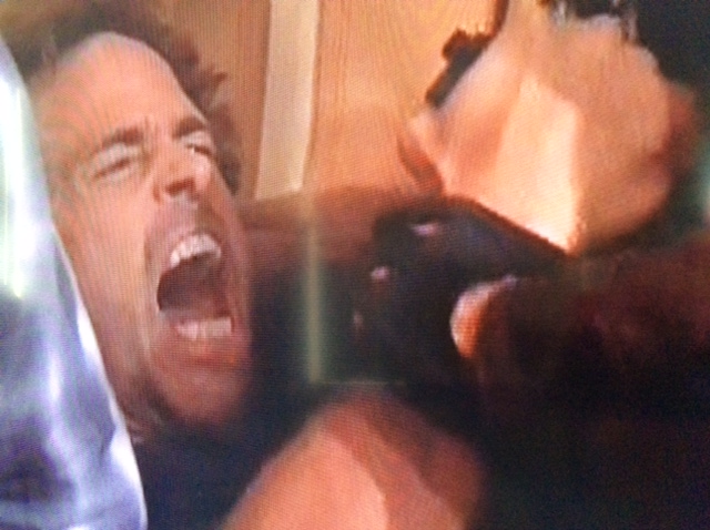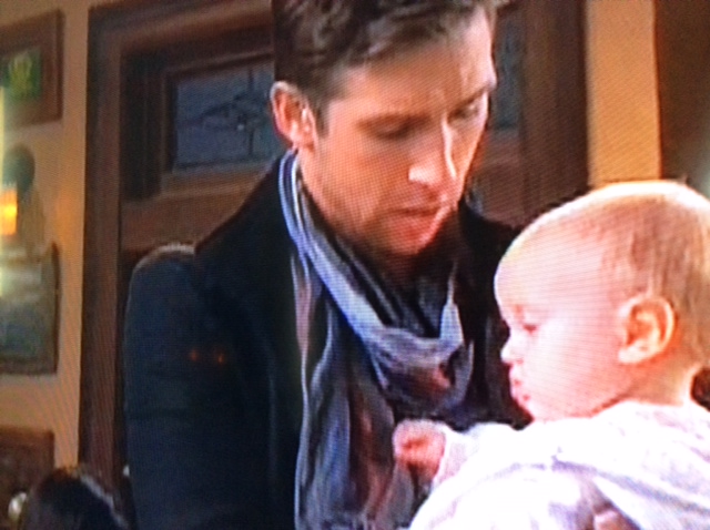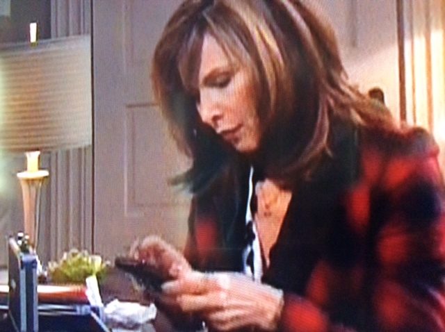 | ALL RIGHTS RESERVED. LINK ONLY! THIS TV EPISODE WAS TWEETED ONE HOUR AHEAD BY DAYSCAFE :) CLIFFHANGER! Friday, February 7, 2014 Episode 12,271 - Kate is elegantly seated at the town square cafe, on her phone with investigator Ortiz. She purrs this is what they have waited for! Lucas appears and wonders about her P.I. and Jordan. Kate smugly states it is all about to come to a head! Lucas wants to know all about it, then decides he would rather not know! She closes her computer and asks about his plans for this night. He sighs he turned down Cheryl, who invited him on a double date with Rafe and Jordan, due to the fact that they are supposed to have an employer/employee relationship. Kate pushes him to date the girl he likes. The world is too loveless! Lucas wonders what Kate the sudden romantic wants. She gushes well there is one tiny favor ... - Rafe catches texting Jordan by the dark town gate with his cane and pulls her to him. They kiss like a couple of teenagers. He roguishly reminds her of their date tonight. She gulps she asked Cheryl to come along. Rafe drawls it is great they are mending fences and assumes she must have given up on the notion that Kate was out to get her. Jordan stares at her guy in the black leather jacket. - At the apartment, Gabi is nervously rummaging through the clean laundry, anxious to find the baby's scarf. She wants to take her to Caroline and forget about ...Will finishes NICK! The girl in the pink sweater is falling to pieces and proceeds to recount all her misdeeds. She cannot read how much Nick the notorious really remembers. Will muses Kate could be right and Mr. Greetings might be the only who knows anything. That does not make her feel better. Will the writer points out they do not have all the facts about who knows what. Gabi screams it is a nightmare and she also screams that Nick and his calm waiting are driving her insane. She screams some more when Will urges her to be calm. He suggests they take Arianna to see Caroline together. Gabi sighs he has plans with Sonny and assures him she will be fine. Will pleasantly tells her they can talk later and saunters off to the club. - Sonny the business owner looks up from his paperwork at the bar, only to find Nick smiling smugly. He grimaces, pours him the glass of beer he requested, and ignores his questions about business and profit. Dangerous music plays as Sonny Kiriakis solemnly steps away. He gets back to his paperwork and Nick suggests he does not much like having him at his establishment. He questions if it is because of how he showed up at the christening. Sonny snaps he understood the explanation before about Nick wanting to see Hope. Nick assures him he wants to change things. Sonny advises him to stop waiting for people to wonder what his next move will be, because he might discover that no one notices or even cares! He sarcastically adds to enjoy his beer and turns away. Nick makes a strange face and drinks up. - At the monastery, Tim the monk talks miracles. Eric gasps he is a believer but this is tough stuff. Tim talks faith. - On the phone with his boss, Ricardo wants to know if he should off the whole group. Back at the mansion, the phoenix wants to know who is there before deciding. Inside the cabin, Dan asks the now drugged Chyka how he met Kristen DiMera as Nicole films with her phone. Chyka confesses he met Kristen through his benefactor - Stefano DiMera! Meanwhile, Stefano is still on the phone, cursing to this thug to tell him who is there. Back inside, Chyka confirms Kristen had asked for his assistance on a project. Outside on the phone, Ricardo admits to Stefano that it appears Chyka is tied up and being interrogated. That is all the phoenix needs. He growls the answers to the questions cannot leave that cabin - none of them! Ricardo understands the order loud and clear. - Kate wishes Lucas a fun double date but asks him to give her a warning call when Jordan and Rafe are on their way home. Lucas is suspicious. Before he can probe, Cheryl appears and Kate insists they go on their double date together. Once alone at her table, the diva in the red plaid jacket calls her investigator Ortiz to meet her and bring that thing they discussed. She is ready to take action tonight! - Jordan changes the subject and kisses Rafe passionately. He says wow and asks what that was for. She calls him irresistible with his cane. He drawls wait until he loses it and they stroll off together arm in arm. - Eric stands by the tranquil monastery window and is confused. Tim explains he was referring to his faith in what God wants. - Nicole is frantically filming and also demands to know about the priest. Dan thinks she should not interfere. The sound of her voice has agitated Chyka the captive, who cries out they would kill him! Nicole suggests another injection. Dan sits and urges Chyka to concentrate on him and his questions. They all require a response. The drugged DiMera doctor agrees and Dan insists he only focus on HIS words. What exactly did Kristen pay him to do? To invent a specific drug cocktail for a specific purpose. What exactly was it? A potion ... including one sedative for submission, a drug for memory suppression, and a strong aphrodisiac to erase any resistance to sexual desire. Dan asks who they said it was for. Chyka stares him squarely in the eye and does not mince words. "Father Eric Brady!" - Stefano reminds Ricardo what he has to do and there is no need to call him until the deed is done! Ricardo whips out his gun. He is on the move! - Tim points out Eric the priest has been seeing this from his own egoistic perspective that includes arrogance and narrowmindedness towards God. He did not consider God's will and God's needs regarding the path he will be shown. - Will arrives and asks about the saloon. Sonny kisses him, grinning it has been quite quiet. He now updates him on Nick's visit, the game he seems to be playing. He trusts him even less than before! Enter cool Rafe and
