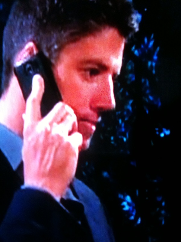 Wednesday, November 14, 2012 ALL RIGHTS RESERVED. LINK ONLY! Up by afternoon November 13 OH GOD! - Replay of Nicole seeing Eric as he pauses during a jog at the town square. It cannot be! She approaches but nurse Maxine steps in front of her and would like a word. Jen is like family to her. Nicole snaps she gets it and looks around for Eric, but alas he is gone! - Kristen has summoned EJ to the coffee house. She has a plan! Marlena enters and overhears her boasting to EJ about her proposition. The blonde advises him to run like hell! And she knows precisely what she is trying to do to her family too! Kristen plays innocent about Horton cabin but Marlena disagrees. She hisses her attempts to insinuate herself in their lives will not work. “You need to back off!” Kristen smiles sweetly. John saunters in and would like to know what is going on. He hastily ushers doc away and asks what Kristen did to her this time. Why, she came in and there she was. John suggests they go elsewhere in that case. Mad Marlena agrees he is right. And so they depart. Ominous music is heard. EJ calls that impressive. It has been long since he has seen Marlena that upset. Kristen calls her unbalanced. Amused EJ assumes that is her plan. He wants to hear all about Smith Island. Kristen tells him the tale and purrs poor Marlena misunderstood, hence her bizarre outbursts. She now gets to the point of this meeting. Sami! She wants an update. EJ explains she has been more receptive, though he has not seen her since getting the children the other day. Kristen muses at that rate, it could take months. Meantime, Rafe is no doubt trying to woo her back. She has an ingenious way to help him see her daily and suggests she work for him. EJ cannot imagine her agreeing to it. He now realizes her plan and teases there must be something in it for her. Kristen does not deny it. - The waitress at the outdoor café asks Rafe if he wants anything else. He imagines Sami’s face for a moment and blushes he is good. He now stands up and listens to Sami’s message to call her right away. Rafe is intrigued. - At his place, Sonny unbuttons Will’s shirt and slowly removes it. Will now does the same to Sonny as they slow kiss. Sweet music plays. They get on the bed, Will on top of Sonny, and continue kissing … - As Nick paces, replay of Gabi learning she is pregnant. She stares in horror. Sami is surprised. Cam is paged to an emergency for a few minutes. Sami assures the girl it will be okay. Gabi cannot believe this is happening! Sympathetic Sami notes birth control is not always foolproof. Her phone rings. It is Rafe. Gabi exclaims not to answer, not to tell Rafe she is pregnant. Sami agrees but she will need to do it. Gabi moans he will hate her. And she does not want him to know! Sami agrees to respect the confidentiality and explains that she still has to call him back. Gabi stammers to make something up and not mention her please. Sami will respect her wishes and walks out of the room. - Sonny and Will bask in the afterglow in bed next to each other, lying hand in hand. Sonny kisses Will’s hand and they smile lovingly at each other. He asks Will if he is okay. Will gushes okay would be putting it way too mildly. Sonny thinks it was perfect. Will makes him promise it really was. He does and then kisses him again … - Nick sighs and helps himself to a coffee as Sami calls Rafe back. She pretends all is well now. Rafe is no fool and hears something in her voice. She thanks him for calling her back regardless and ends the call. Rafe stands and stares in the town square. He senses something is amiss, but what? Back at the hospital, Nick gingerly approaches Sami and asks if everything is okay with his beloved Gabi. - Nicole is searching high and low for Eric in the town square but alas he is nowhere to be seen. She starts to doubt herself. Was it really him? She flashes back to their last meeting, when he informed her he was leaving town. She had promised to get a divorce so they could be together. They hugged, exchanged I love yous, and kissed in front of the pub. Back to reality. Nicole is determined to find Eric if that was him … - In the afterglow, Will pats Sonny’s head, which rests upon his shoulder. Sonny suspects he was about to say something. Will muses it would be wrong to talk in this special moment but Sonny gently presses him to say what is on his mind. Will sincerely states that for the first time in his life, he feels secure in his own skin, he knows who he is, and he knows where he wants to be. He teases he is not mentally moving his stuff in and tells Sonny not to freak out. Sonny touches his chin and smiles he would not freak out. This is all new to Will - to talk about his feelings. Sonny grins they are both exactly where they belong and they hold each other close. - Dr. Cam returns to Gabi the emotional wreck. Is she doing alright? She gasps no, for she is pregnant! How can it be so soon for the test to show up? Cam points out she is actually 9 weeks pregnant, maybe even 12. He suggests she see an OBGYN. Gabi flashes back to her tryst with Will. She is numb. The doctor offers a referral for a specialist, then gets paged away for another moment. Gabi gasps again. "This is Will's baby, not Nick's!" - Meanwhile, Sami assure nervous Nick that Gabi is fine. She suggests he scamper back to the pub to help Eddie, as hospitals take time and they need him at the pub. She promises to make sure Gabi gets in touch as soon as she can. Grateful Nic departs, unaware that secrets are being kept from him. - As EJ and Kristen have their coffee, he politely wonders just how she benefits from his being Sami’s boss. He suspects she only wants John. That is her agenda. Kris dangles to him the allure of power to a woman, which would help him win the fair Sami. EJ notes fatha would not want him to run his company but Kristen urges him to call and find out! - John and Marlena walk past the town square gate, flanked by pretty au