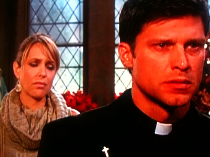 | DAYS OF OUR LIVES Part 2 Monday, December 24, 2012 ALL RIGHTS RESERVED. LINK ONLY! PRELUDE TO A CHRISTMAS - Part 2 Eric calls Father Ryan a great man, one who did great things and sacrificed his life for the girl Nema. Nicole asks what happened to her. She was traumatized and decided she wanted nothing to do with Eric or photography. Nicole is sympathetic. Eric gasps he was a coward. Nicole disagrees and insists he is a good man. Eric exclaims but he is not a man who stands up without fear. He is here trying to fill Father Ryan’s shoes but he is not one tenth of what he was. How it torments him! Nicole feels his pain yet insists he is not as bad as he believes. At the town square, Rafe is on his phone giving a description of the elusive laughing penguin but has no luck. He places the next call. Caroline discreetly gets back to work as EJ greets her and Samantha. Sami perceives he is upset. He laments he was at sister Lexie’s grave and might not be good company. Sami realizes it must be harder during the holidays and offers to provide some holiday spirit. She brings out Sydney and Johnny. EJ holds them tight and his face lights up like a Christmas tree. At the hospital, Kayla asks lonely Abe about his Christmas Eve plans. She knows Eric will be giving a midnight mass. Abe plans to drive to Chicago to visit Celeste with Theo. Kayla hopes he will be back for Christmas day. Indeed. She has something in mind and teases they shall see! Dapper Abe is intrigued. New Cam enters the coffee house and Chad is glad to see him. He was thinking of him as he just visited Lexie’s grave. He hopes they can get to know each other. Cam agrees and would also like to learn more about his late sister. They shake on it. Nicole insists to Eric that Father Ryan had already stepped in so there was nothing he could have done. Eric is a good man, She goes on to suggest perhaps this happened for a reason. Perhaps he was brought here as there is something he can do that Father Ryan could not have. Eric cries and thanks her for listening, but asks to be left alone. Nicole quietly leaves. Eric raises his eyes to the heavens, then glances back at Nicole one more time. He proceeds to study his notes for the midnight mass. Father Tobias enters and wonders if things are alright. Eric replies that they just might be … Nicole runs into Sister Annabelle at the town square collection box. She makes a donation and asks how things are going. Times are tough but everyone wants to help those in need. Nicole looks up to the heavens and smiles Amen to that. EJ sits and reads a Christmas story to the kids. Caroline then takes them into the kitchen for cookies. EJ thanks Sami. She explains to him the kids are always happy to spend time with him. She wishes EJ a Merry Christmas and impulsively hugs him. The kids race back wanting another story. EJ gets to it. Sami smiles at the scene and leans over, her arms draped around EJ and Johnny. Just then Rafe arrives with the penguin for Sydney. He surveys the family moment from the outside window and wistfully turns away ... END |